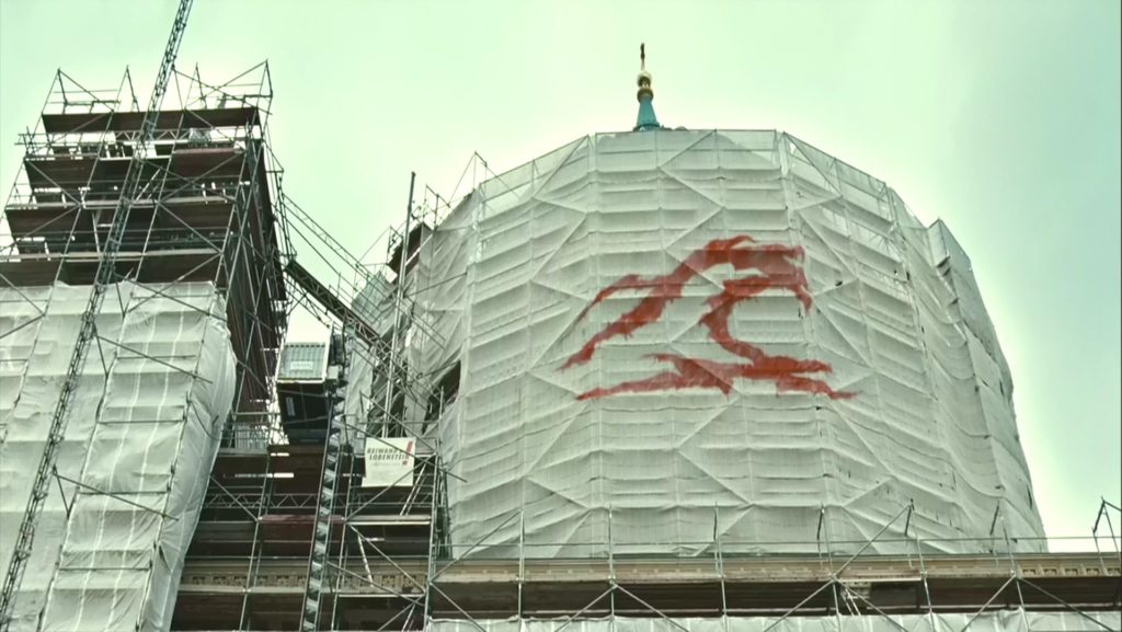 “浪潮”的成員們爲了向外界人們宣傳“浪潮”這個組織,他們自發性的製作“浪潮”標志的貼紙,將貼紙貼在大街小巷;他們也將“浪潮”標志的塗鴉,小至塗滿大街小巷、在當地黑幫的標志上,大至當地政府建築物上。這一切都是爲了將“浪潮”宣傳給所有人,也印證了文格爾先生所說的:“行動鑄造力量”,所有“浪潮”的成員都應徵了這句話。